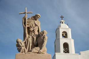![]() Statute of Padre Garcés with Saint Thomas Indian Mission beyond. Photo date: 3-12-05. |