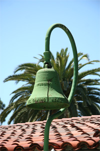 | An El Camino Real bell used as a marker to remind us of its Mission history. Photo date: 5-3-08. | |