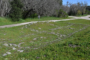 | A large open area north of the Mission. In the right image, the white object is the Spring House. | |