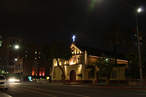 ![]() Night view of the Plaza Catholic Church, exterior. |