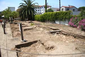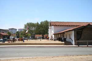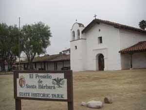 In April of 1782, Lieutenant José Francisco Orrtega and a party of soldiers and settlers arrived in at a site between the Santa Ynes Mountains and the Pacific Ocean. El Presidio Real de Santa Barbara, the fourth presidio, was founded in Santa Barbara on April 21, 1782, four years before the founding of Mission Santa Barbara. On that day, Father Junípero Serra celebrated Mass and thus, established the city of Santa Barbara. Santa Barbara Presidio provided security to the missions along the Central Coast between San Fernando and the Pueblo of Los Angeles and San Luis Obispo. Lieutenant José Francisco Ortega, the first Comandante, was succeeded in 1784 by Lieutenant Felipe de Goicoechea who commanded until 1802. The original construction was a palisade of vertical logs joined by horizontal sticks and covered with mud. Between 1784 and 1788, the adobe structure was built. The adobe structures formed a quadrangle about four hundred feet on each side with a nine-foot outer wall completed in 1789. Between the outer wall and the adobe buildings were small individual yards. In the center of one wall was the church and in the opposite wall was the gate. At two opposite corners were guard towers from which the entire perimeter of the Presidio could be observed. Later, about 1792, the original Chapel, too small and ready to collapse, was replaced with a larger Chapel. A new outer defense wall was constructed on this side. Earthquakes in 1806 and 1812 caused extensive damage to the structures. After the Mexican Resolution in 1821, all people refusing to pledge loyalty to the new government were expelled. The Presidio further deteriorated and by the 1840, the Presidio was in partial ruin. With the arrival of Colonel John C. Fremont and the US occupation, the Presidio ceased to be a military installation. El Presidio Real de Santa Barbara was the last Presidio to end service. The Presidio had deteriorated and was no longer of importance when the streets of Santa Barbara were laid out in the 1850as and 1860. Now, the reconstructed structures yield to streets and an intersection is located just inside one corner of the central plaza. Other, now historic, building were later built on the site, including Santa Barbara's China Town. Parts of the Presidio were demolished in 1925. The presidio had deteriorated and the city was growing when the Santa Barbara Trust for Historic Preservation began to preserve and reconstruct the site in 1963. The reconstruction of the Chapel was completed in 1985. Careful archeological excavation uncovered the original stone foundations, all that remained, which guided the reconstruction of the Chapel. Part of the surviving structure is El Cuartel, the second oldest residence in California. (See San Diego Old Town for the oldest residence) El Cuartel was the residence of the last soldier who guarded the West Gate of the Plaza de Armas. Current Archaeological work is preparing the original stone foundations for reconstruction of a second corner. A block away from the Presidio is Casa de la Guerra, the home of Presidio Commandant José de la Guerra. This U-shaped home was built in 1820. The Santa Barbara Trust for Historic Preservation has been researching and restoring this structure since 1990. |