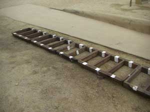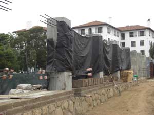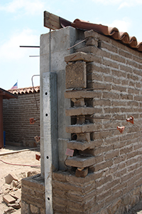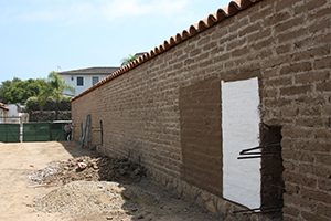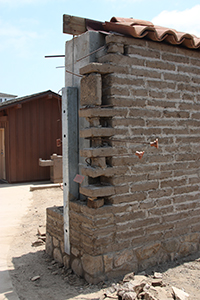 | Southwest wall as of May 15, 2010. Note the use of concrete within the adobe to stabalize the wall. | |