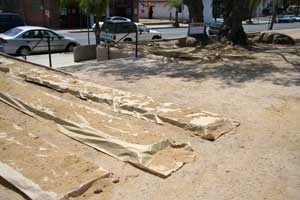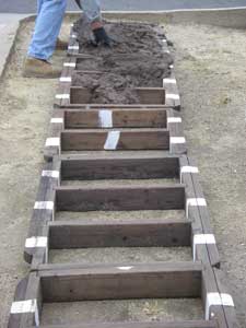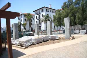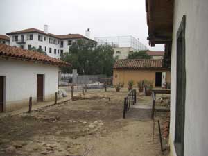 | My wife and I had been visiting the mission and related constructions in Santa Barbara in September of 2003 and were tired as we left for home. The last Spanish construction we saw in Santa Barbara was the Santa Barbara Royal Presidio, on the way out of town. Two streets breach the restored wall of the Presideo with an intersection toward one corner of the parade grounds. A quick look and we promised ourselves that we would stop the next time. We kept that promise on a Saturday in May of 2004 when El Presidio de Santa Barbara State Historic Park was our primary destination. We spent several hours exploring the three pieces of the restored adobe Presidio and the adjacent Commander's home. Restoration is continuing, so we plan to return every few years. We visited it again briefly a few months later as part of the Red Tile Walking Tour of historic Santa Barbara. It was many years before I returned, on May 15, 2010 to help make adobe bricks for the restoration of the west corner outer wall. |