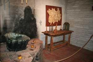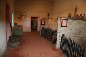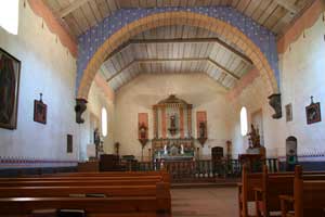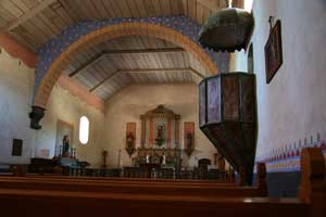 Don Gaspar de Portola traveled through Jolon Valley in 1769. He was inspired to tell Father Junipero Serra of the Valley who chose the location for the third mission in California. Mission San Antonio de Padua was founded on July 14, 1771 by Father Junipero Serra. In 1773, the mission was moved to a new site, its current location, about two and a half miles northwest, farther up the Los Robles Valley to a better source of water. In 1773, the first recorded marriage in Alto California was performed between Juan Maria Ruiz and Margaretta de Cortona. In 1806, a water-powered gristmill was constructed a few hundred feet to the south of the mission. The mill and millrace are accessible to visitors. The existing restored church is third and final church constructed between 1810 and 1813. In 1821, a three-arch portico was added twelve feet in front of the church. This new facade contained bell towers. San Antonio was the most successful mission in educating and converting the native population and eventually became one of the most prosperous of the missions. Mission industries included cattle and sheep and wine and basket weaving. While the mission was at first moderately successful, the native population was decimated by disease and the mission was eventually abandoned. In 1834, secularization saw Mission San Antonio de Padua transferred from the padres to civil control and the mission fell into neglect. In 1863, the U.S. Land Commission returned 33 acres of mission property. Following the death of the last resident priest in 1882, the mission was abandoned and the structures deteriorated. The roof collapes in 1890 due to termite damage to the timbers. Only some walls remained when reconstruction began in 1903. Between 1902 and 1908, the California Historic Landmarks League rebuilt the church wall and roof. This restoration was slowed by he 1906 San Francisco earthquake which toppled most of the walls and slowed reconstruction as work continued through 1908. 1928 saw the Franciscans invited back to care for Mission San Antonio. It was not until 1948 that grant money from the William Randolph Hearst Foundation allowed the restoration of the mission from 1948 to 1952 to its current state. |