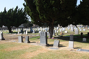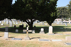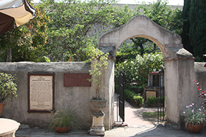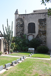 | The Camposanto (Cemetery) was used for burials from 1778 to 1865 and archives suggest that 6,000 Neophytes were interred here during that period. The cemetery was first consecrated in 1778, three years after the Mission was moved to this site. The Cemetery was rededicated January 29, 1939. The Cemetery had been sued for the burial of Padres and Bretheren of San Gabriel Mission since 1939. Seven of the early Franciscan Fathers are interred in front of the altar within the chapel. |