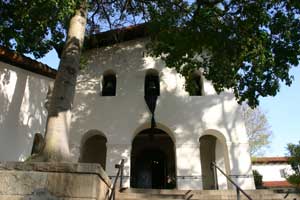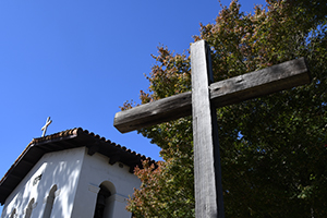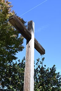 ![]() Wall and cross in front of church. |