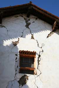 On the morning of December 22, 2003, about 10:00 am, an earthquake originating about 30 miles west of Mission San Miguel Arcángel struck the area and damaged the mission. Within a few weeks, most of the museum complex reopened to the public. The church will remain closed until a seismic retrofit can be performed. We had the bad luck to have planned a visit only three days after the quake and again two days later on our return trip, while the entire site was still closed. We visited the open portion of the mission a few months later and returned again several times and hope to return when the church is repaired and reopens. Earthquakes are a part of the mission story. Few missions do not have a story to tell of damage from earthquakes. The stone church at Mission San Juan Capistrano was never rebuilt. I personally have lived through two earthquakes that damaged Mission San Fernando. With your contributions, Mission San Miguel Arcángel will rebuild and the church, described as the best preserved of the missions, will reopen. It has been several years since the earthquake but finally restoration has begun. The Missions is hoping to celebrate Christmas Mass in the Mission this year (2009). Although restoration has begun, the Missions still needs contributions to complete the process and pay the bills. Contributions to the rebuilding can be made to: Old Mission San Miguel Parish 775 Mission Street P.O. Box 69 San Miguel, CA 93451-0069 |
