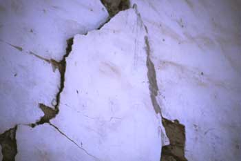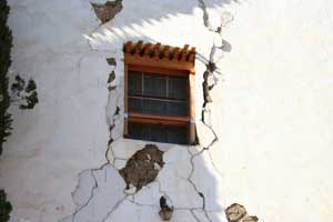 | Closeup of cracks on front of church. Photo date: 12-27-03. | |