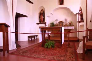 Personal ObservationsI visited Mission Santa Cruz in November 2003, but forgot my wide angle lens and I hope to return to Mission Santa Cruz in 2004, with the correct lens. There is little left of the actual mission. Earthquakes in 1857 and 1859 destroyed the original church. A modern church (1889) stands where the mission church once sat. There is a piece of Indian housing remaining from the original mission. A small replica of the church was built in 1931 on a near by site.I had just bought a new camera and unintentionally left my wide angle lens at home attached to my old camera. We do hope to return this year to reshoot some photos of this mission using my favorite lens. |