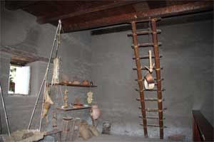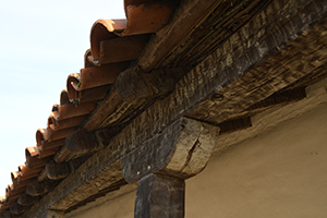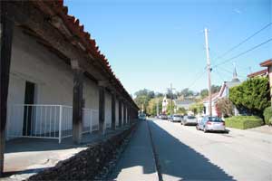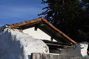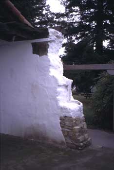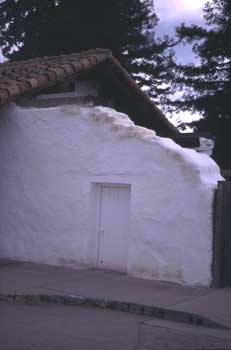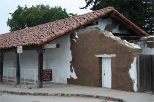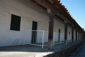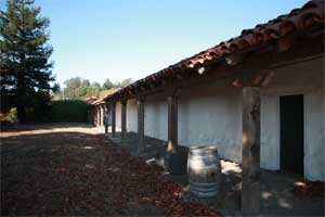 | This building originally contained 17 rooms for family housing. Seven room remain. This is the oldest family housing building remaining in California. A similar building once existed about 200 feet north. The reproduction mission is midway between what would be the far end of these buildings if they existed. |