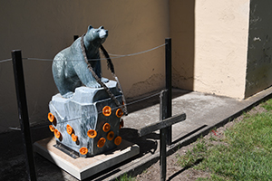 Bear sculpture between Church and Cemetery.