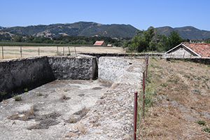 ![]() From east mill looking toward west mill with Mission Santa Ines beyond. |