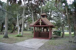 ![]() The Rustic Altar commemorats the first parish Mass celebrated in Saint Augustine. The altar is sometimes used for special Mass. |