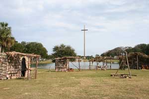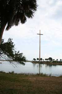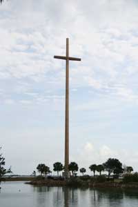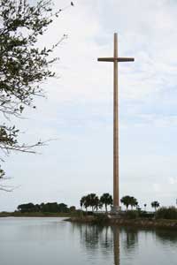 | The 208 foot Great Cross shown in the following images was erected in 1965 to commemorate the St. Augustine Quadricentennial. The site is believed to be where St. Augustine was founding on Sept. 8, 1565 at which time a small wooden cross was errected. The cross weighs 70 tons, is covered with 200 stainless steel panels, and is illuminated at night. |