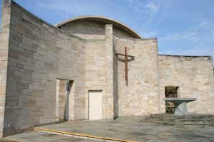 ![]() Church side yard. This outdoor altar is made of solid granite and is used on Palm Sunday and other special days. |