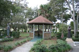 Mission Nombre de Dios (Name of God) dates to the founding of the City of St. Augustine, America's oldest city, in 1565. On September 8, 1565, Pedro Menendez de Aviles landed and proclaimed this site for Spain and the Church. Father Lopez de Medoza Grajeles celebrated the first parish Mass here and it carries on with its mision today. The Prince of Peace church was built in 1965 to commemorate the Mission's Four Hundredth anniversary. |