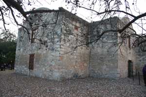 HistoryMission San Antonio de Valero was established in 1718, the first of the San Antonio Missions. Later, after it was secularized, it gained fame as the Alamo, important in Texan independence.Cenvento and Long BarrackWhat is today the Long Barrack is the oldest building in San Antonio and began as the Convento, or prists' residence. It was built in 1724 as part of the Mission. After secularizing, the building was used as Spanish army barrack and hospital, later is was a fortesss, a United States Army quartermaster depot, a general store, and in 1905 became a shrine and museum. The Church and Long Barrack are the only remaining structures from the Mission and the Alamo.The Alamothe Siege of the Alamo 1836When used as a fort by the Mexicans during the Siege of Béxar, a palisade (double log wall) was built across an open space betwen the old church and the Low Barrack. When the Texans took posession of the fort, they strengthened the fort. General San Houston wrote ..."that the Alimo was not built by a military people as a fortress..." lacking a structure with a commanding view. During the Siege of the Alamo, Colonel Crockett and his men were assigned to defend this section of wall. The Church and Long Barrack are the only remaining structures from the Alamo. Address and Directions |